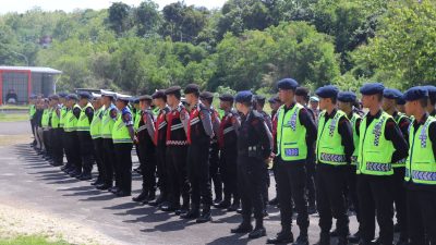 Dansat Brimob Polda Bali,Kombes Pol. Firdaus Wulandto, S.I.K., didampingi Dirpolairud Polda Bali dan seluruh pejabat yang terlibat melaksanakan apel untuk mengecek pengamanan yang dilakukan oleh anggota Polri.