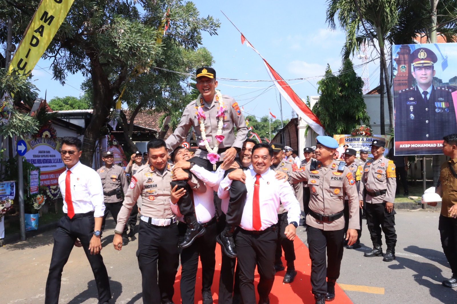 Upacara diawali dengan penyambutan Kapolres baru secara adat serta tradisi pedang pora, dilanjutkan dengan laporan satuan dan pelepasan Kapolres lama. Seluruh personel memberikan penghormatan terakhir kepada AKBP Mohammad Zainur Rofik yang dikenal sebagai pemimpin yang humanis, tegas, dan penuh dedikasi selama memimpin Polres Madiun.
