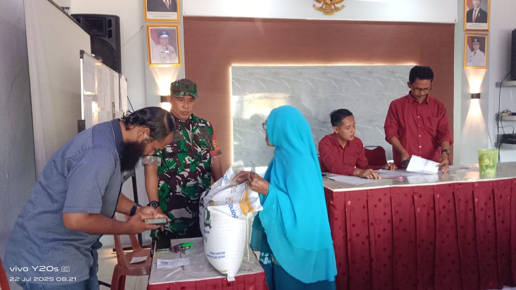 Majalengka – Anggota Koramil 1702/Maja turut serta memonitor kegiatan Penyaluran Cadangan Pangan (PCP) Pemerintah untuk Pemberian Bantuan Pangan Beras yang dilaksanakan pada Selasa (22/7/2025). Kegiatan berlangsung di wilayah Kecamatan Maja, Kabupaten Majalengka, sebagai bagian dari program pemerintah dalam membantu masyarakat kurang mampu yang terdampak secara ekonomi.