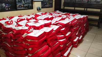 Dalam penyerahan paket sembako tersebut menggunakan 8 kendaraan yakni 1 truk box dan 7 Isuzu ELF yang mana paket sembako tersebut diletakkan di beberapa tempat/ruangan antara lain :