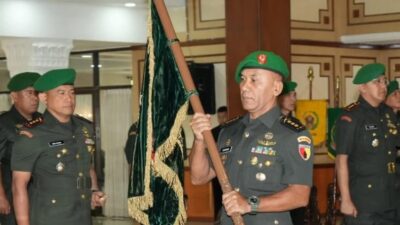 Prosesi serah terima jabatannya yang berlangsung pagi ini dipimpin oleh Pangdam V/Brawijaya Mayjen TNI Farid Makruf di Gedung Balai Prajurit Kodam V/Brawijaya, Surabaya, Senin (27/2/2023).