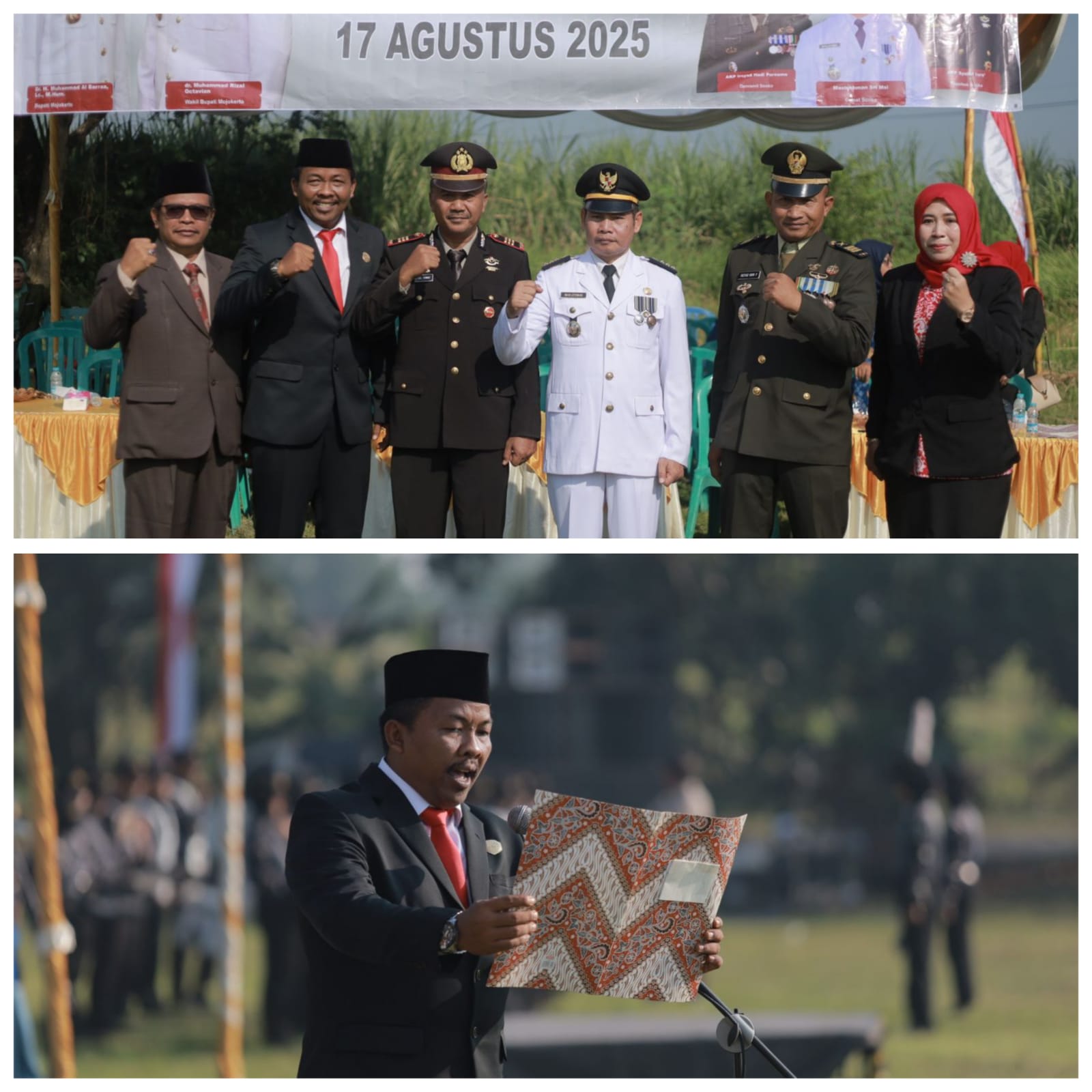Dalam momen tersebut, Ketua Komisi IV DPRD Kabupaten Mojokerto dari Fraksi PKB, M. Agus Fauzan mendapat amanah untuk membacakan teks Proklamasi Kemerdekaan Indonesia.