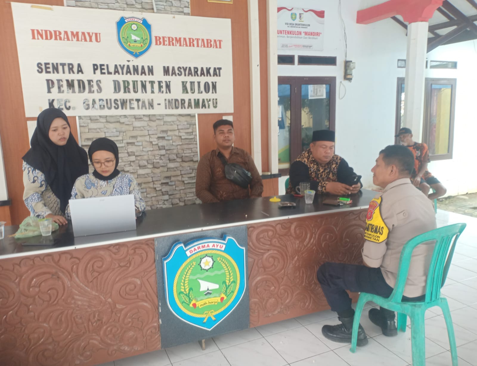 Dalam sambang tersebut, BRIPKA Zaenal Abidin berdialog dengan para pamong desa untuk mengetahui situasi dan kondisi keamanan di Desa Druntenkulon.