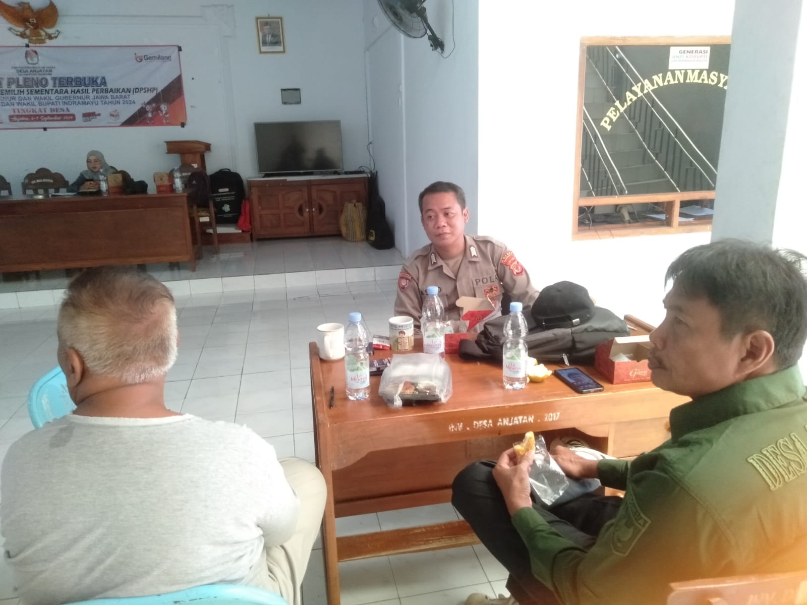 Dalam pertemuan ini, Aipda Johan bersama perangkat desa berdiskusi mengenai keamanan lingkungan, termasuk langkah-langkah pencegahan potensi gangguan kamtibmas.