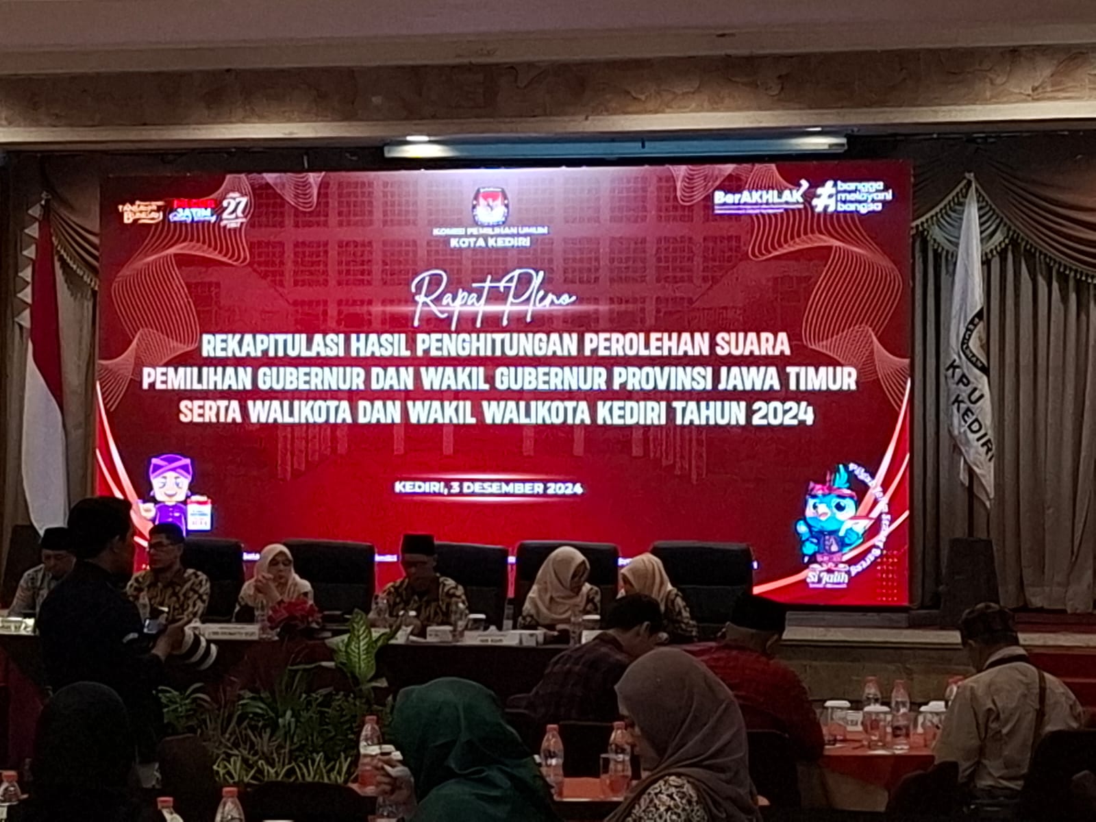 KOTA KEDIRI,BJ BUSERJATIM.COM-Komisi Pemilihan Umum (KPU) Kota Kediri gelar Rapat Pleno Terbuka Hasil Perhitungan surat suara Pemilihan Gubernur dan Wakil Gubernur Jawa Timur juga Pemilihan Walikota dan Wakil Walikota Kediri tahun 2024 pada Selasa, (3/12/2024) malam di Lotus Garden Hotel Kota Kediri.