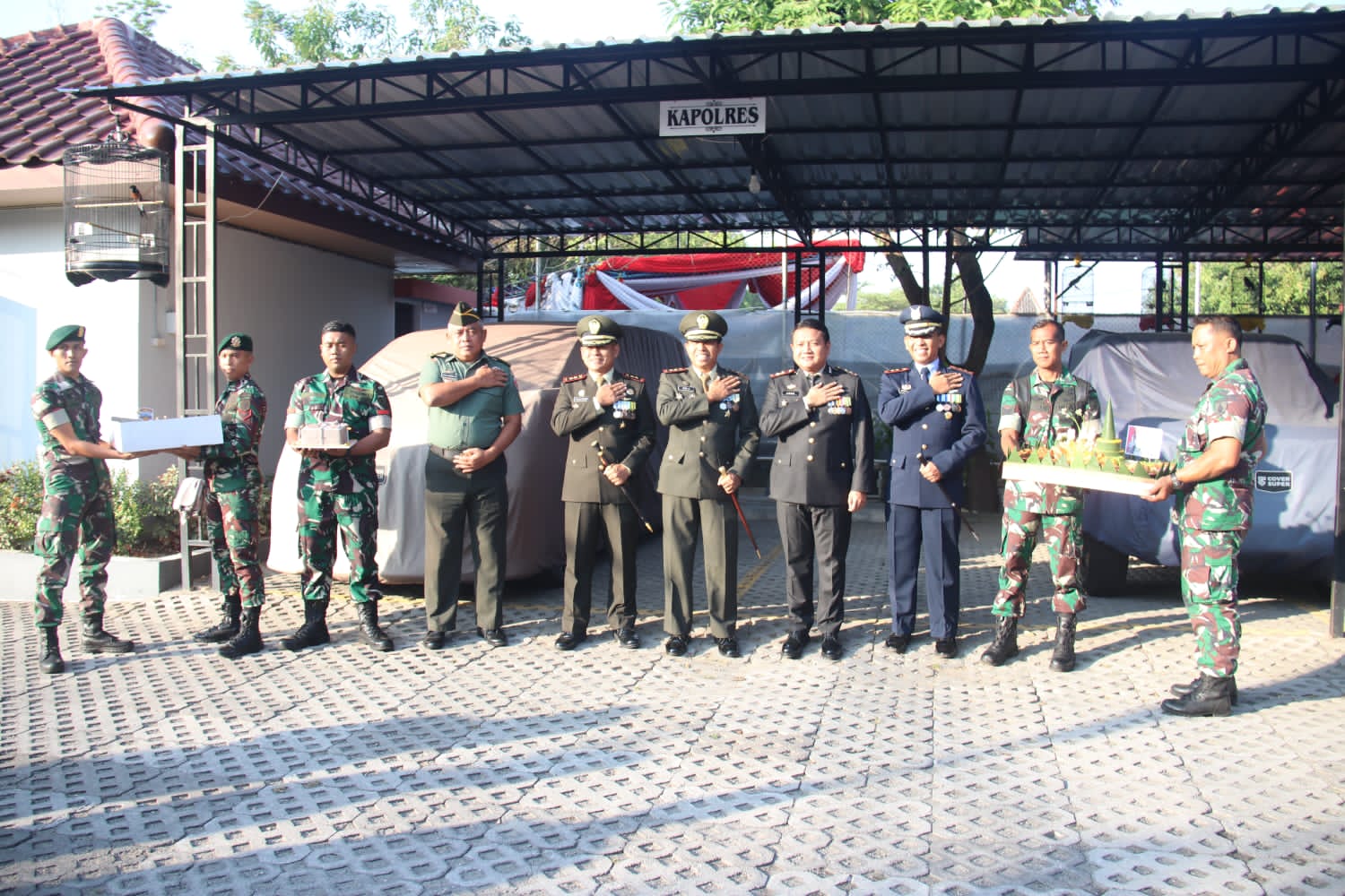 NGAWI, BUSERJATIM.COM GROUP – Dalam perayaan Hari Bhayangkara ke-78 yang penuh semangat, Dandim 0805/Ngawi Letkol Arm Didik Kurniawan,S.I.P., bersama dengan perwira dan anggota,beri kejutan surprise istimewa dengan mengunjungi rumah dinas Kapolres Ngawi, AKBP Argo Wiyono, di Jl. J.A Suprapto, Ngawi. Senin (01/07/2024).