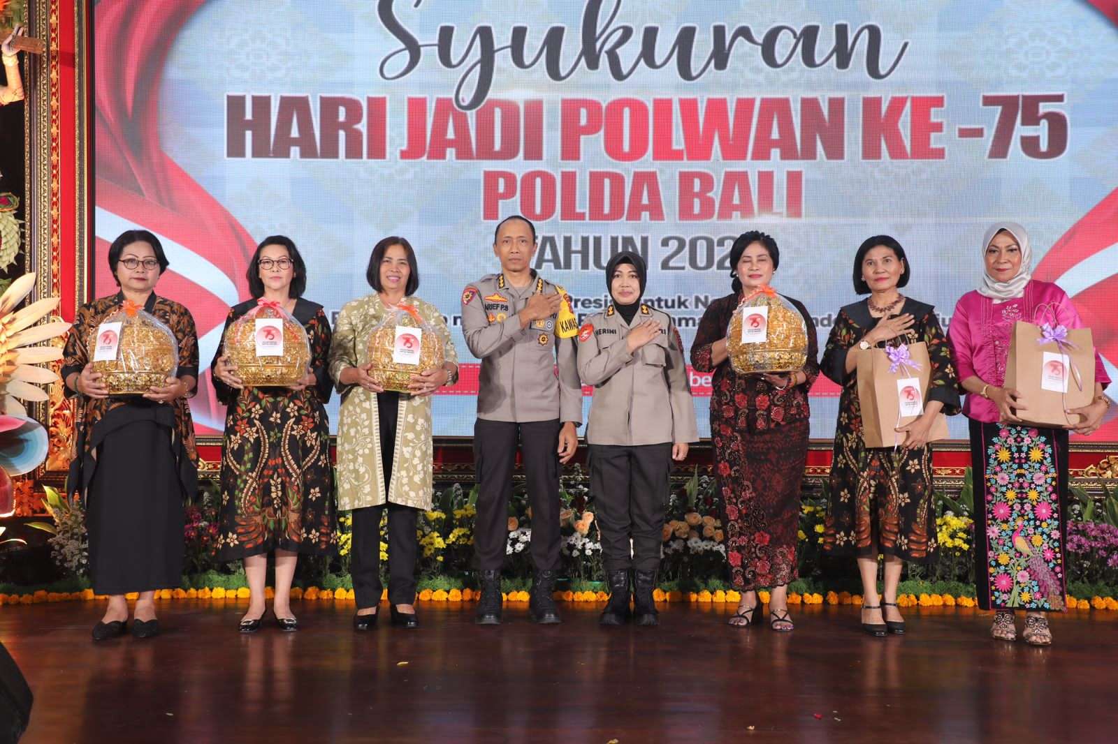 Memperingati hari jadi Polisi Wanita (Polwan) RI ke-75, Polwan Polda Bali menggelar acara syukuran yang digelar di gedung Perkasa Raga Garwita Polda Bali, Selasa (5/9/2023).
