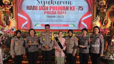 Memperingati hari jadi Polisi Wanita (Polwan) RI ke-75, Polwan Polda Bali menggelar acara syukuran yang digelar di gedung Perkasa Raga Garwita Polda Bali, Selasa (5/9/2023).