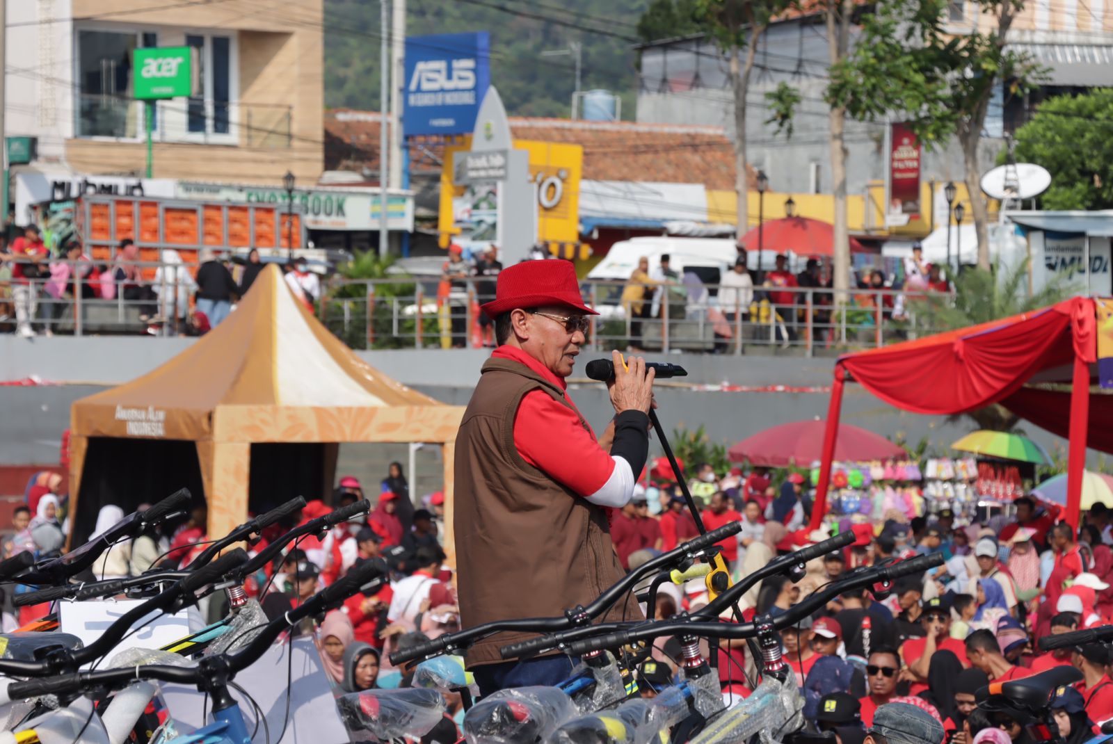 Kegiatan itu juga di meriahkan dengan nomor undian untuk pembagian dorprize bagi warga yang ikut serta dalam gerak jalan santai.