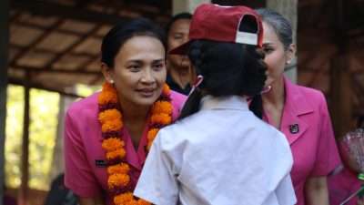 Ketua Umum Bhayangkari, Ny. Juliati Sigit Prabowo bersama Ketua Bhayangkari Daerah Bali, Ny. Ira Ida Bagus turun langsung ke lapangan membagikan sembako, makanan tambahan untuk anak stunting, memberikan edukasi tentang cara sikat gigi yang benar, pemeriksaan gigi gratis, membagikan alat tulis dan menggelar pengobatan gratis.