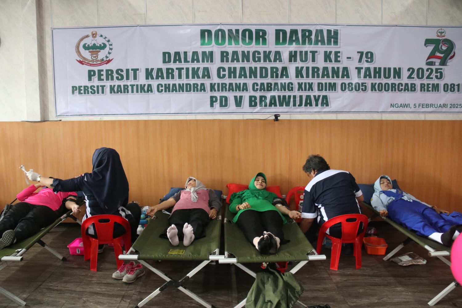 Ngawi – Dalam rangka memperingati Hari Ulang Tahun (HUT) ke-79 Persit Kartika Chandra Kirana, Kodim 0805/ Ngawi menggelar kegiatan donor darah