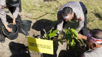 “Jumlah pohon yang kami tanam sebanyak 350. Dengan beranekaragam jenis pohon yakni, pohon Alpukat, Durian, Sirsak, Mangga, Cengkeh, Klengkeng dan Ketapang,” ujar Karo Sdm Polda Bali.