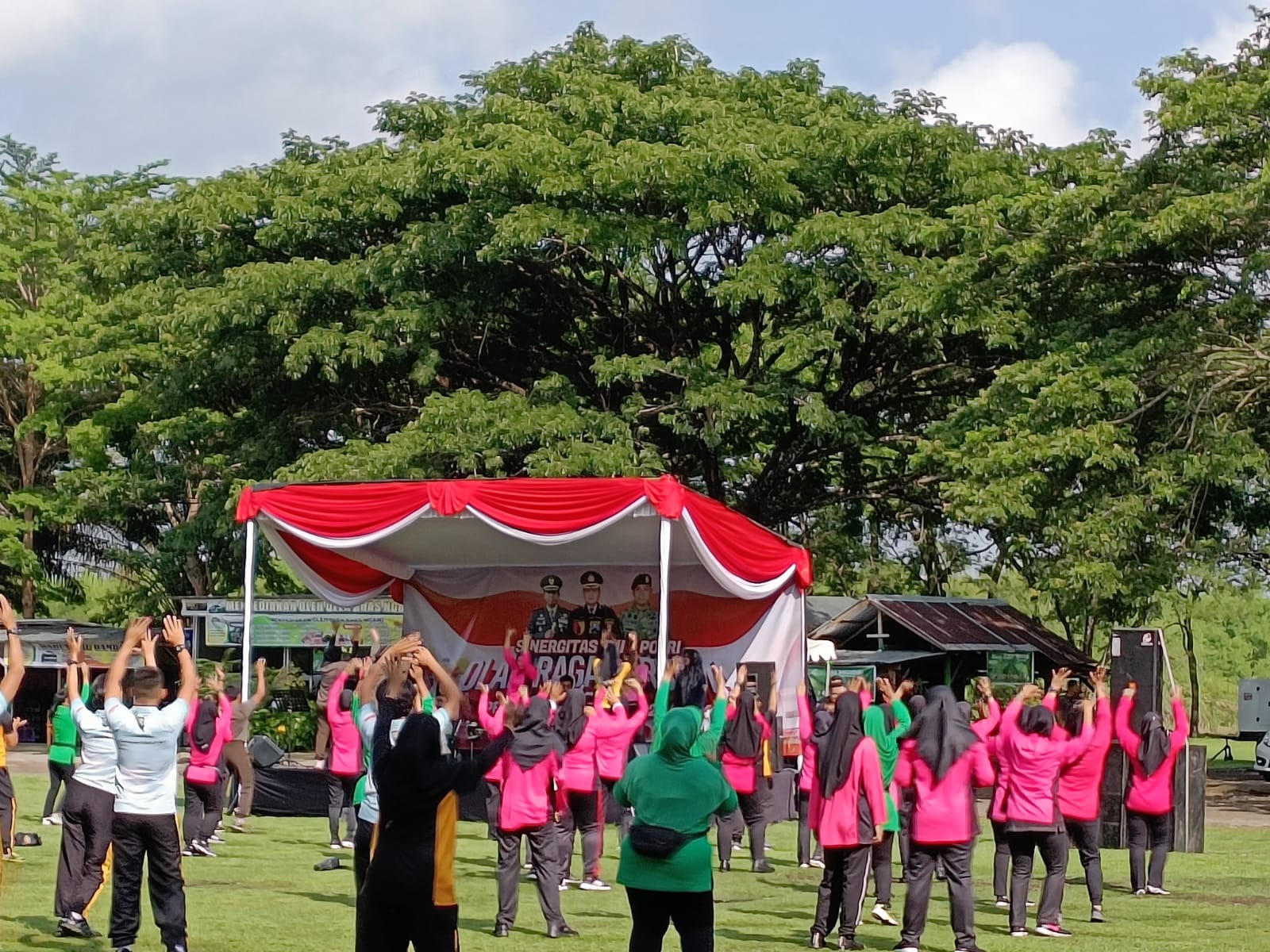 Olahraga bersama dalam rangka upaya memperkuat sinergitas TNI Polri demi terciptanya situasi aman kondusif menjelang Pemilu 2024.