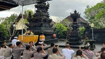 Untuk meningkatkan keimanan dan ketaqwaan terhadap Tuhan Yang Maha Esa personel Polres Badung yang beragama Hindu melaksanakan sembahyang bersama dalam rangka Purnama Sasih Kesanga di pura Catur Giri Loka Polres Badung Jl. Kebo Iwa No. 1 Mengwitani, Kecamatan Mengwi Kabupaten Badung, Bali. Senin (03/07) pagi pukul 09.00 wita.