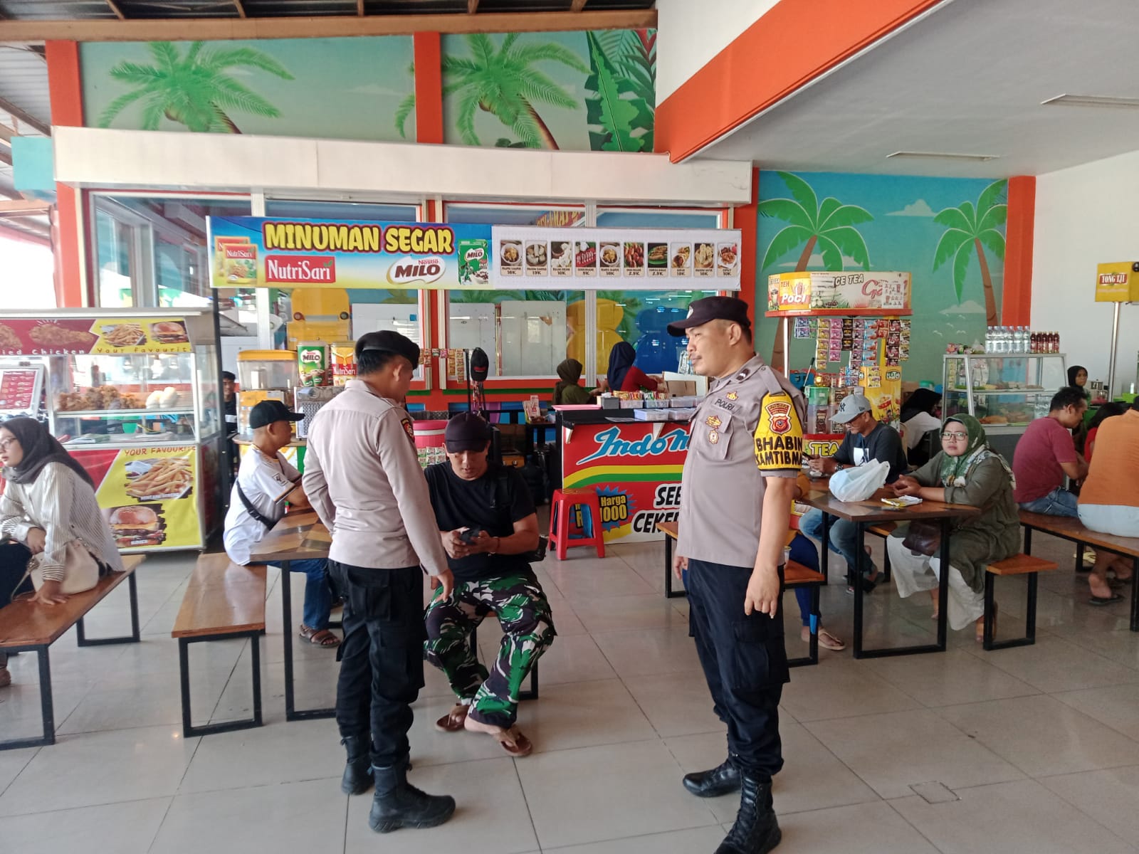 Salah satunya dengan mendatangi masyarakat yang sedang berada di Toserba Surya, personel Polsek Kdp Aipda Bachtiar mengajak untuk menjaga kamtibmas dan dapat melaporkan ke hot line 110 apabila mendapati hal-hal mencurigakan.