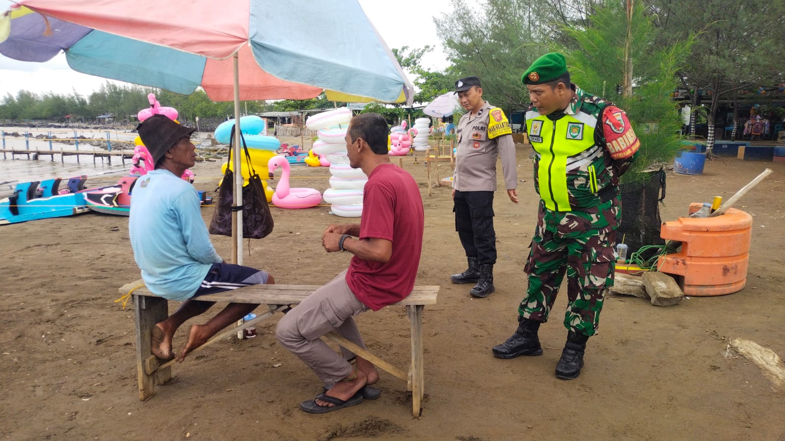 Dalam kegiatan patroli, petugas juga melakukan dialog dengan pengelola objek wisata dan para pengunjung untuk mengetahui situasi terkini serta menyampaikan pesan-pesan keamanan.