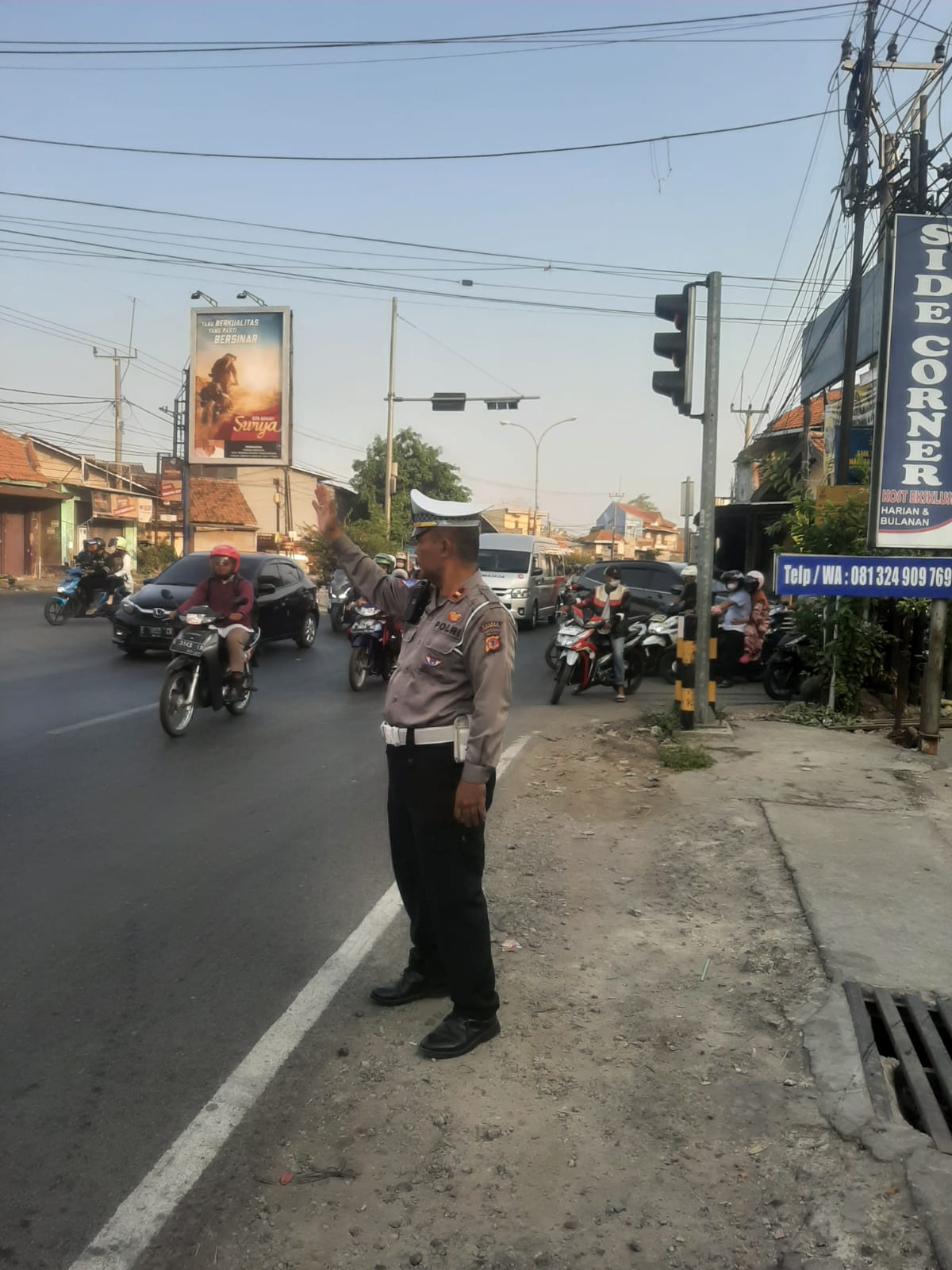 Upaya untuk menciptakan Kamseltibmcar lantas yang aman dan kondusif, serta bentuk pelayanan Polri kepada warga masyarakat Panit 1 Lantas Ipda Anyu Suparya bersama anggota melaksanakan giat pengaturan pagi di titik rawan macet maupun rekayasa lalulintas yang ada di Wilkum Polsek Kedawung.