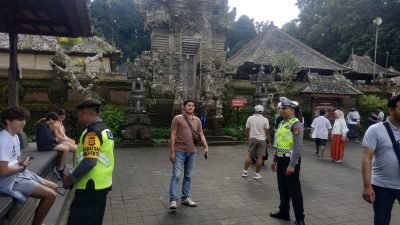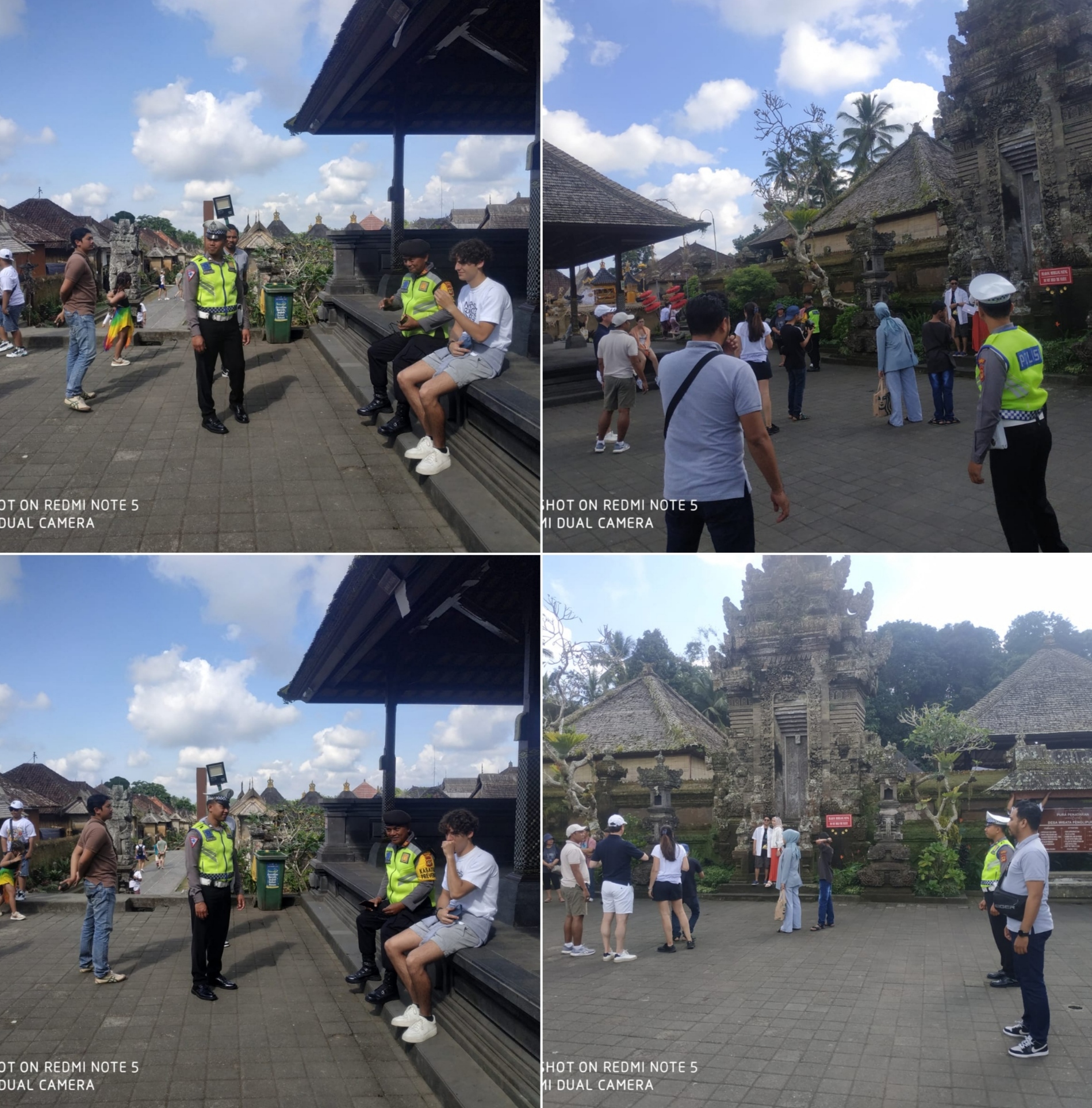 Kata Kasatgas Akp Kadek Suadnyana, Sh bahwa personil melakukan pengamanan dan memberikan Imbauan Harkamtibmas Kepada pengunjung dan pemandu wisata khususnya WNA yang pada intinya Imbauan apabila memasuki Tempat suci agar menggunakan pakaian adat dan tidak sedang datang bulan, tidak memanjat pohon yang disakralkan, tidak berkelakuan yang menodai Kesucian Pura yang disucikan seperti mengambil gambar dengan pakaian tidsk sopan, mematuhi peraturan lalu lintas dalam menghunakan kendaraan bermotor seperti gunakan helm dan memiliki suat ijin Menhemudi dan tidak terlibat dalam aktifitas ilegal seperti jual beli barang ilegal termasuk obat obatan terlarang.