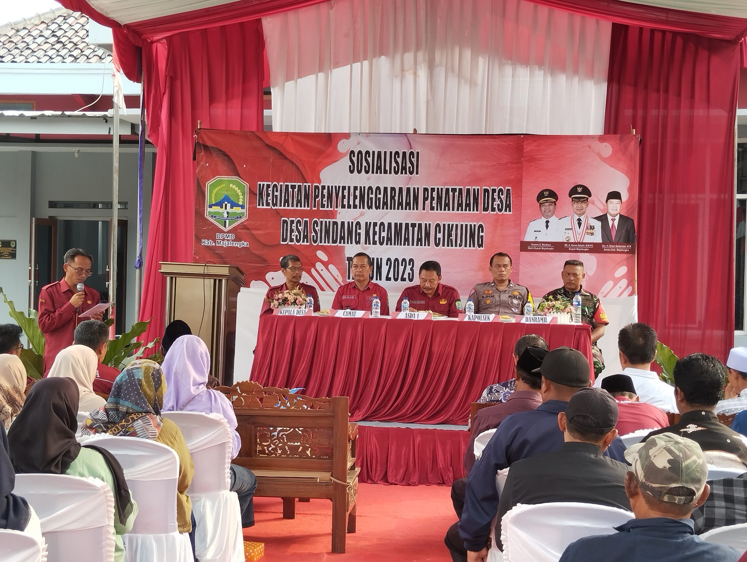 Majalengka – Kapolsek Cikijing Polres Majalengka Polda Jabar AKP Rudy Djunardi M, S.H., M.H. diwakili Bawas Ps. Panit Lantas Aiptu Ade Deni H. menghadiri rembug desa perluasan kesempatan kerja Melalui program Padat Karya Tunai Desa (PKTD) dan pembangunan sarana pertanian, rehabilitasi, pemeliharaan jalan usaha tani Desa Sindang, Kecamatan Cikijing, Kabupaten Majalengka, Rabu (08/11/2023).