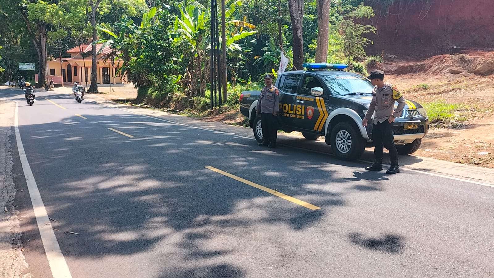 Majalengka – Demi menekan angka pelanggaran pengendara dan laka lantas, Ps. Panit Samapta l Polsek Cikijing Polres Majalengka Polda Jabar, Aipda Eman Subagja dan Bhabinkamtibmas Briptu Pijar melaksanakan giat PATAKA (Patroli Rawan Kecelakaan) di Jalan Raya Cikijing-Kuningan. Senin (11/06/2023).
