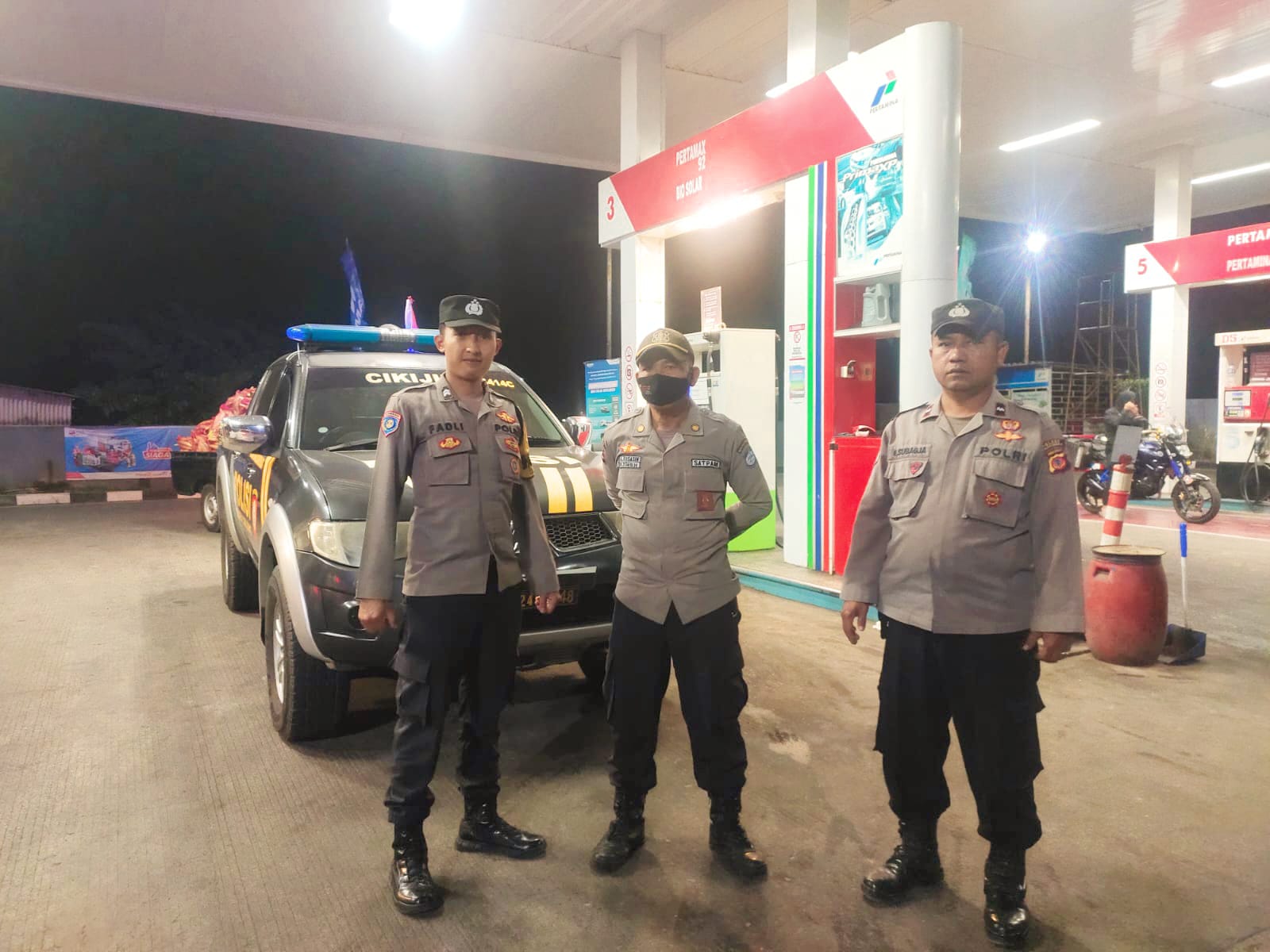 Majalengka – Personil Polsek Cikijing Polres Majalengka Polda Jabar, Ps. Panit Samapta l Aipda Eman Subagja dan Bhabinkamtibmas Briptu Fadli melakukan Pengamanan dan monitoring di SPBU Cikijing Kabupaten Majalengka, Sabtu (23/09/2023) dini hari.