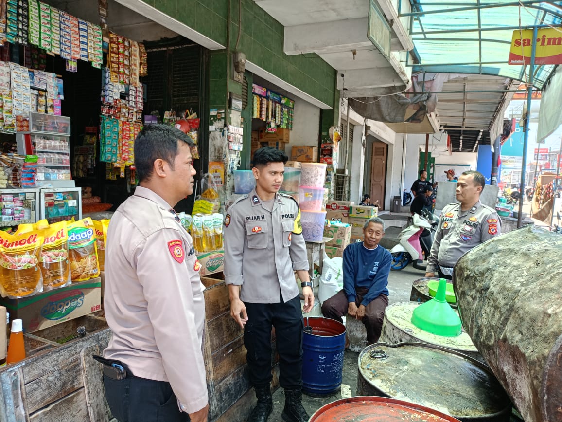 Majalengka – Sesuai arahan dari Kapolres Majalengka Polda Jabar AKBP Indra Novianto,S.I.K.,M.Si., CPHR., Kapolsek Cikijing AKP Rudy Djunardi M, S.H., M.H.melalui Personil Polsek Cikijing Polres Majalengka Polda Jabar, Ps. Panit Lantas Aiptu Ade Deni H bersama Ka SPKT l Aipda Asep Nugroho dan Bhabinkamtibmas Briptu Pijar melaksanakan patroli ke toko Sembako dan memantau harga serta mengecek ketersediaan Sembako di pasaran, Senin (02/10/2023).
