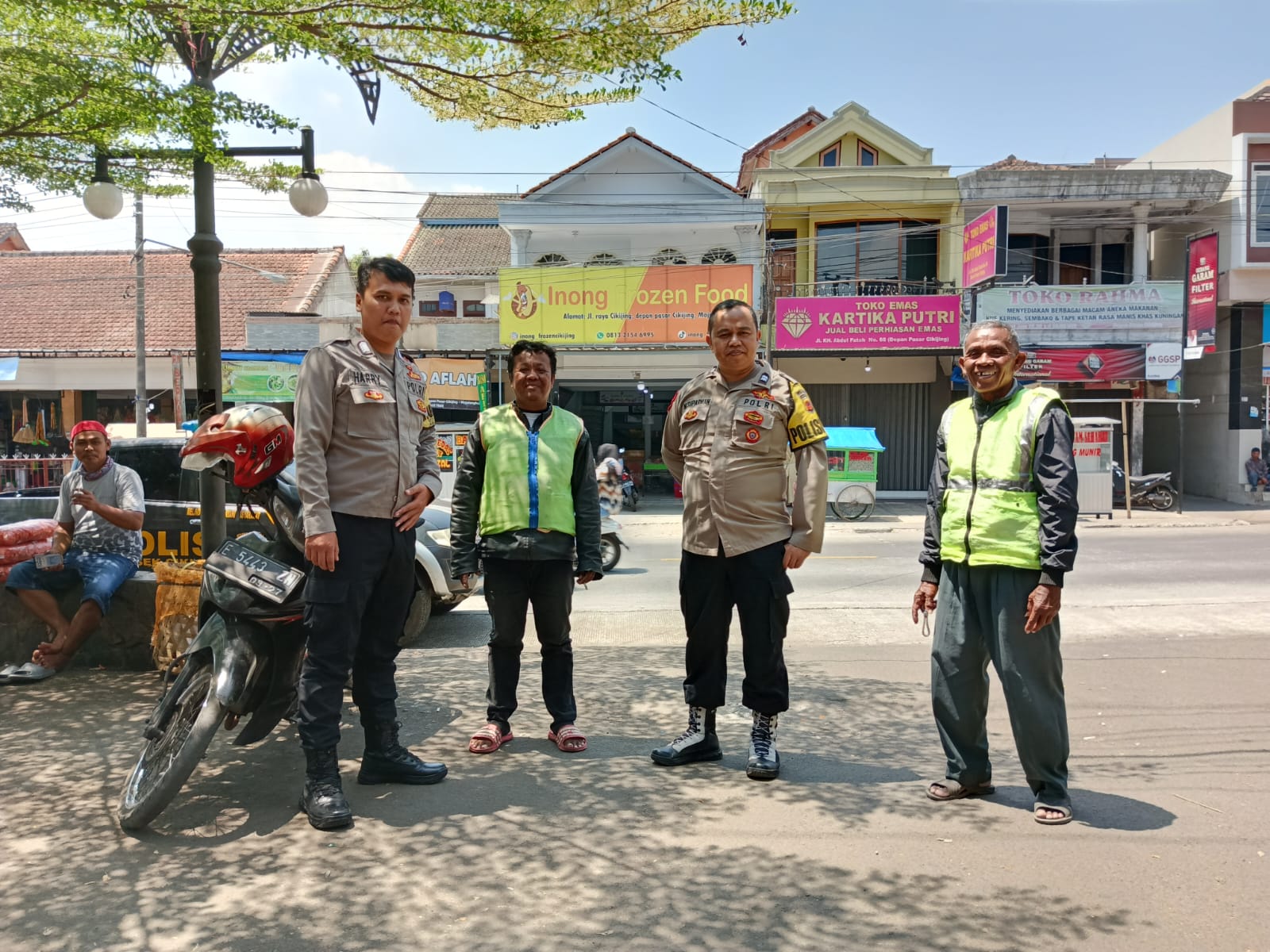 Majalengka – Banyak cara yang dilakukan jajaran Kepolisian dalam menjaga keamanan dan ketertiban masyarakat, salah satu caranya adalah dengan patroli dialogis dan patroli sambang. Seperti yang dilakukan oleh Personel Polsek Cikijing Polres Majalengka Polda Jabar, Ps. Panit Provos Aiptu Memen Suparman, S.H., bersama Bhabinkamtibmas Bripka Harry kepada pengemudi Ojek di Pangkalan Ojek Pasar Desa Cikijing, Kecamatan Cikijing, Kabupaten Majalengka, Senin (25/09/2023).