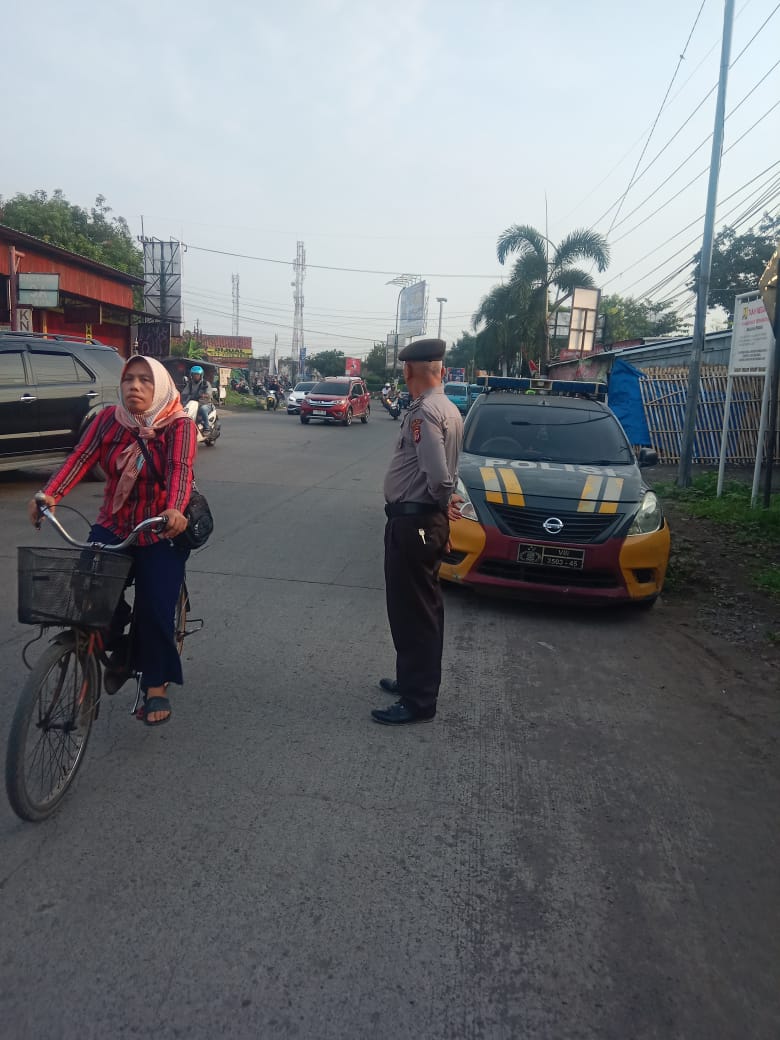 Personil Polsek Kedawung Polres Cirebon Kota Gatur Pagi Urai Kemacetan Arus Lantas