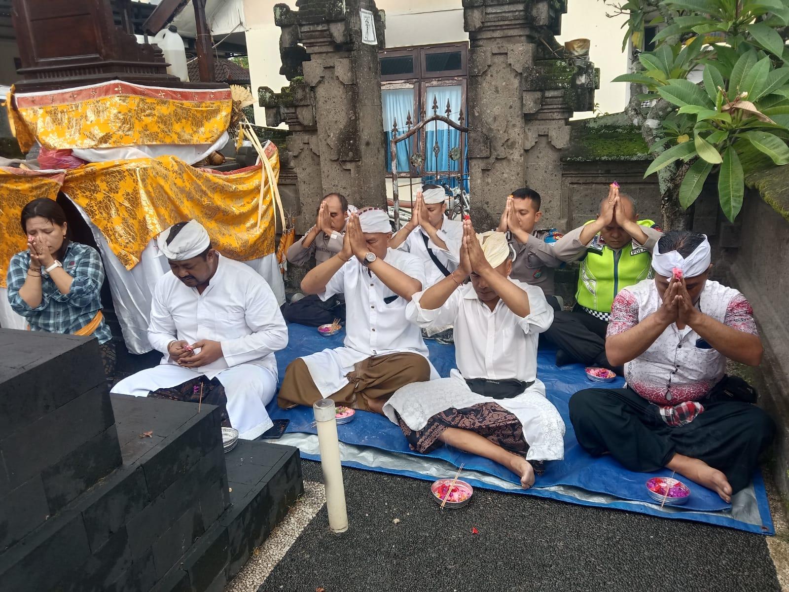 Persembahyangan tersebut di ikuti seluruh personil Polsek Kuta Utara yang beragama Hindu, di Pimpin Aipda Ida Bagus Weda Suparta.