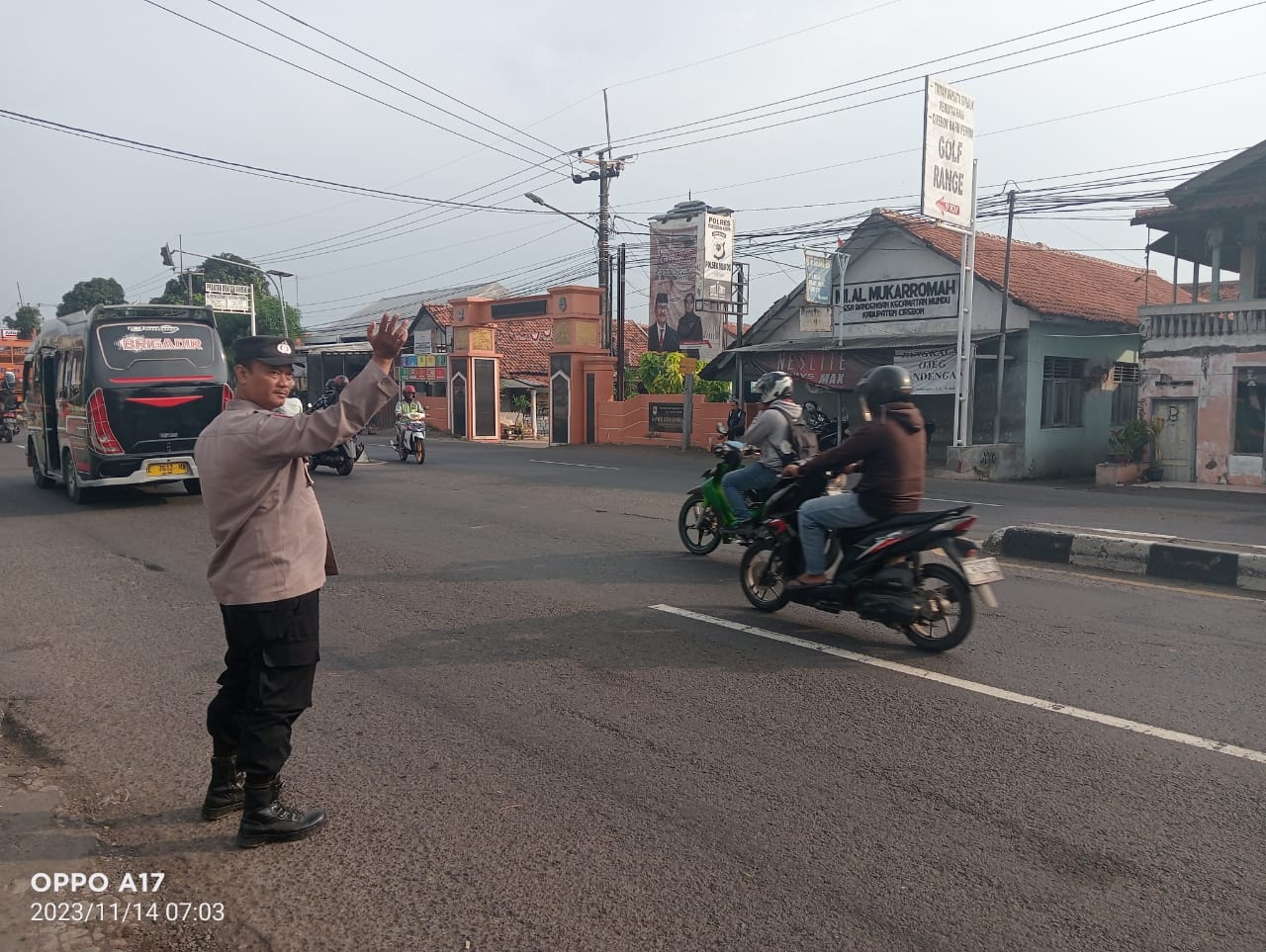 Personil Polsek Mundu Gelar Gatur Pagi Urai Titik Rawan Kemacetan