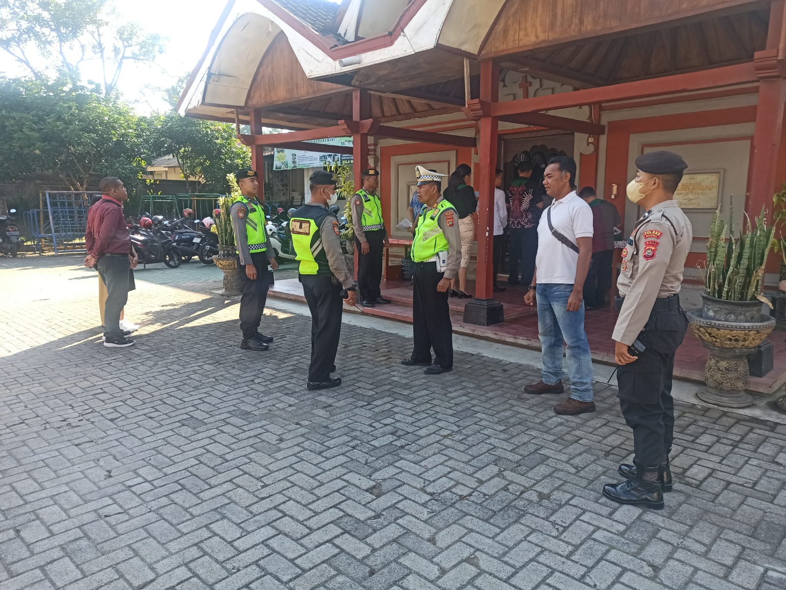 Demi menjaga situasi tetap kondusif, Personil Polsek Polres Bangli melaksanakan pengamanan kegiatan Ibadah Minggu, di Gereja Marga Rahayu Bangli, Minggu (25/06/2023) pukul 09.00 WITA.