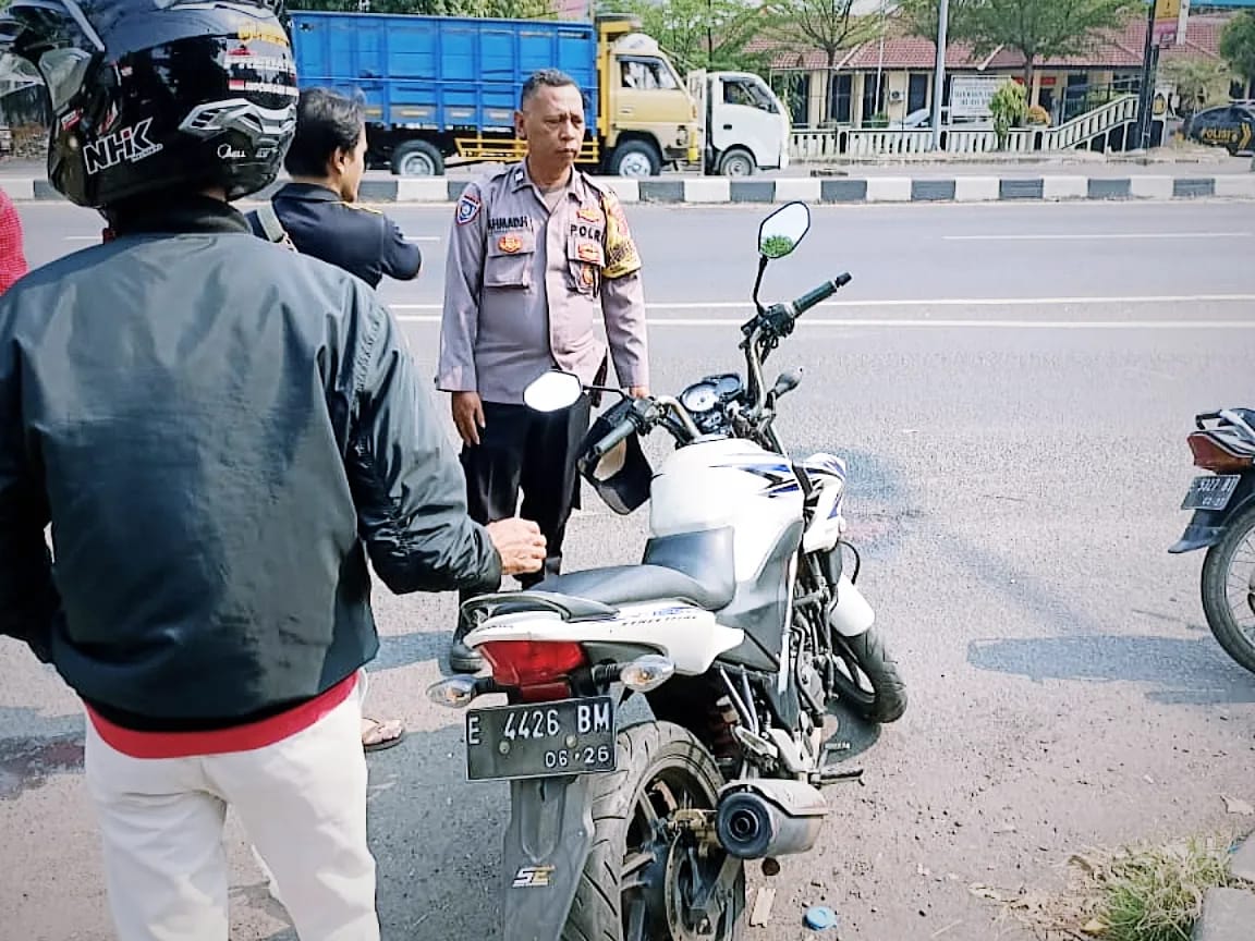 POLRES CIREBON KOTA,-Personil Polsek Seltim dengan sigap menolong korban kecelakaan lalu lintas di Jl.Ahmad Yani Bypass depan Mako Polsek Seltim, Senin (23/10/2023).