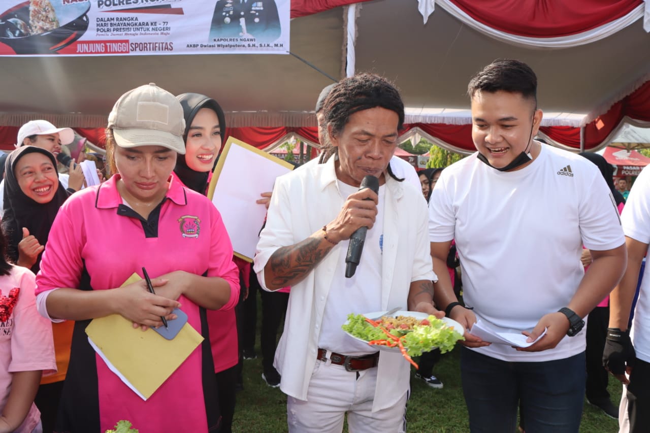 Lomba masak nasi goreng, hadiahnya untuk para pemenang selain uang pembinaan dari Polres Ngawi yang diserahkan oleh Ny. Famella Dwiasi, juga mendapatkan emas berbentuk LM yang diberikan olah Adnan dari Kantor Pegadaian Cabang Ngawi.