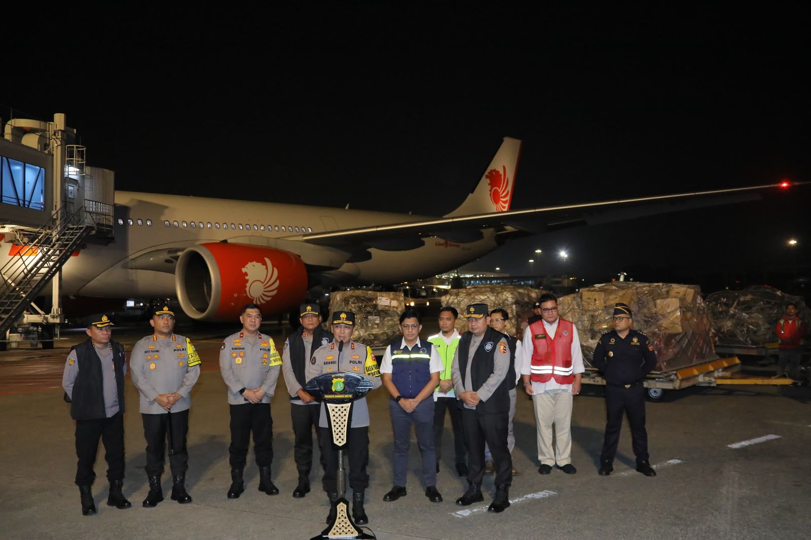 Kadivhumas Polri Irjen. Pol. Sandi Nugroho mengatakan bantuan yang dikirimkan ini adalah kloter lanjutan dari pemberangkatan bantuan menggunakan pesawat dua Hercules yang dilepas Presiden Jokowi kemarin (4/11/23).