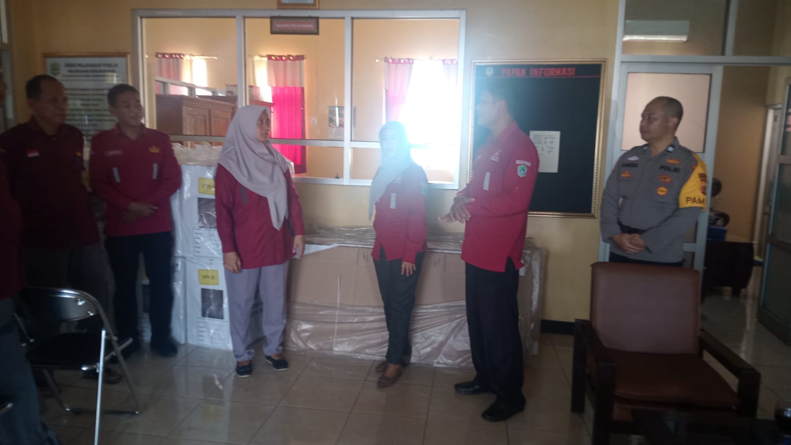 Majalengka, Aiptu Samsul, S.M., petugas Pam TPS dari Polsek Majalengka Kota, Polres Majalengka Polda Jabar, dengan penuh keramahan menyambut kunjungan Camat Majalengka Supartyningsih, S.IP. M.A.P. di Tempat Panitia Pemungutan Suara (PPS) yang berada di Kantor Kelurahan Sindangkasih, Kecamatan Majalengka, Kabupaten Majalengka. Kehadiran Camat ini dalam rangka memastikan kelancaran dan kesiapan TPS untuk Pemilihan Umum (Pemilu) 2024, yang berlangsung pada Rabu (14/2/2024).