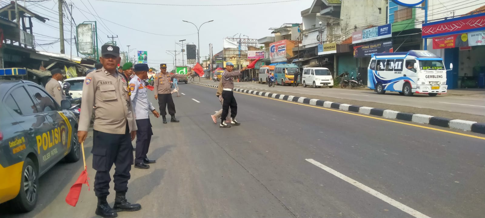 Dalam kegiatan ini, petugas juga memberikan bantuan kepada warga yang menyeberang jalan dan memberikan himbauan kepada pengguna jalan.