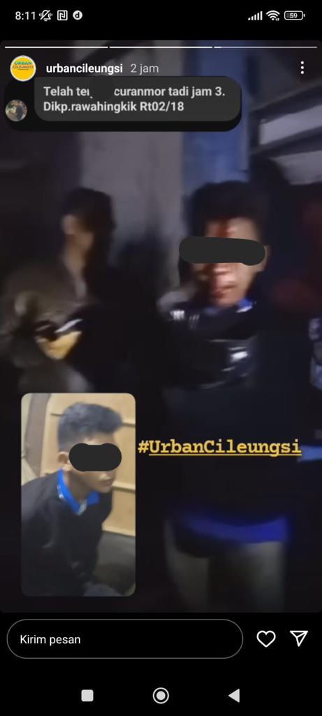 Pelaku sempat menjadi bulan-bulannan warga yang geram akan aksi pelaku, sebelum akhirmya petugas Kepolisian Polsek Cileungsi Polres Bogor yang datang ke lokasi langsung mengamankan pelaku.