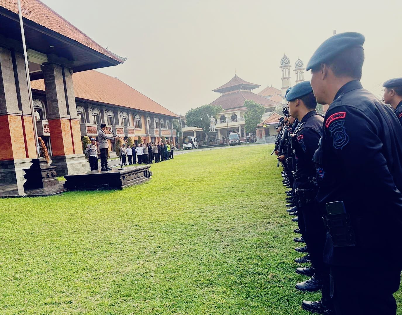 Rabu, 27 November 2024Kombes Pol Jansen Avitus Panjaitan S.I.K., M.H., menyampaikan kita ketahui bersama hari ini 27 nopember 2024 puncak dari rangkaian Pilkada yaitu tahap pemungutan suara dan para personil Polda Bali dan jajaran sudah terseting untuk melaksanakan tugas pengamanan di masing-masing TPS diseluruh Wilkum Polda Bali.