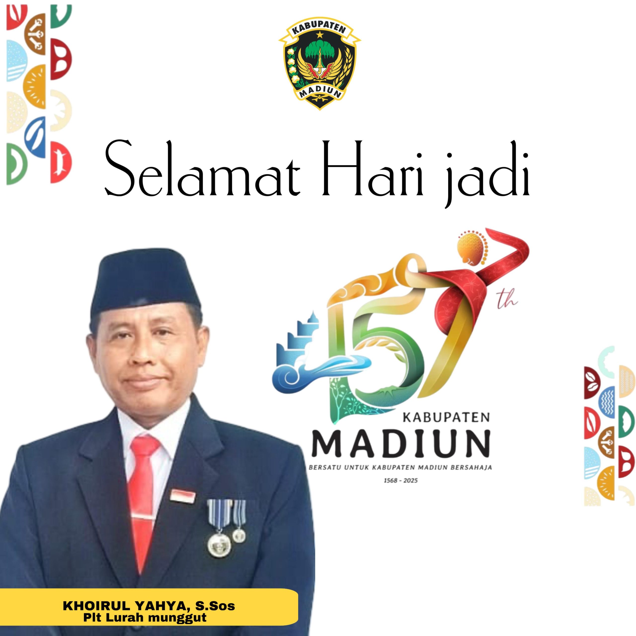 Madiun,BUSERJATIM.COM GROUP –Dalam rangka memperingati Hari Jadi Kabupaten Madiun ke-457 tahun 2025, Pelaksana Tugas (Plt) Lurah Munggut, Khoirul Yahya, S.Sos, menyampaikan ucapan selamat dan harapannya bagi kemajuan daerah.