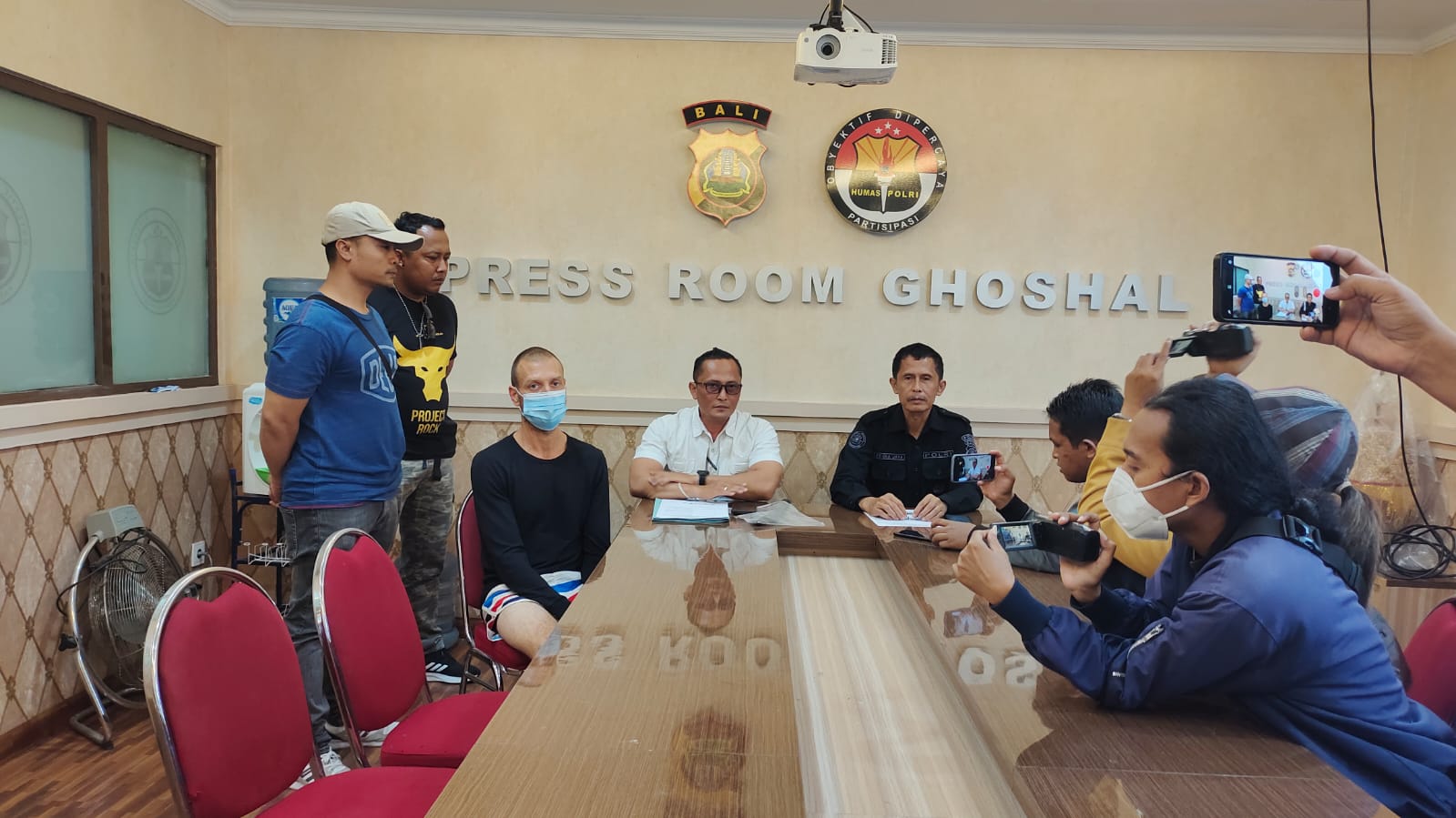 BALI – BUSERJATIM.COM. Saat Pressrilis di ruang Press Room Ghosal Bid Humas Polda Bali yang diwakili Kasubid Penmas AKBP Ketut Eka Jaya S.Sos., M.H., didampingi PS. Kasubdit 3 Ditreskrimum Kompol Made Adhiguna S.H.,M.H., membenarkan adanya WNA/bule yang di amankan karena kasus menghadang dan merusak mobil dinas Polri, kamis (15/6/2023).