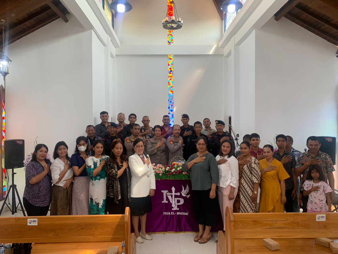 Kepolisian Daerah (Polda) Bali kembali melaksanakan program Minggu Kasih dengan jemaat Greja dan masyarakat di Greja al sadae polda Bali, asrama Brimob Tohpati, Denpasar, Minggu (29/10/2023).