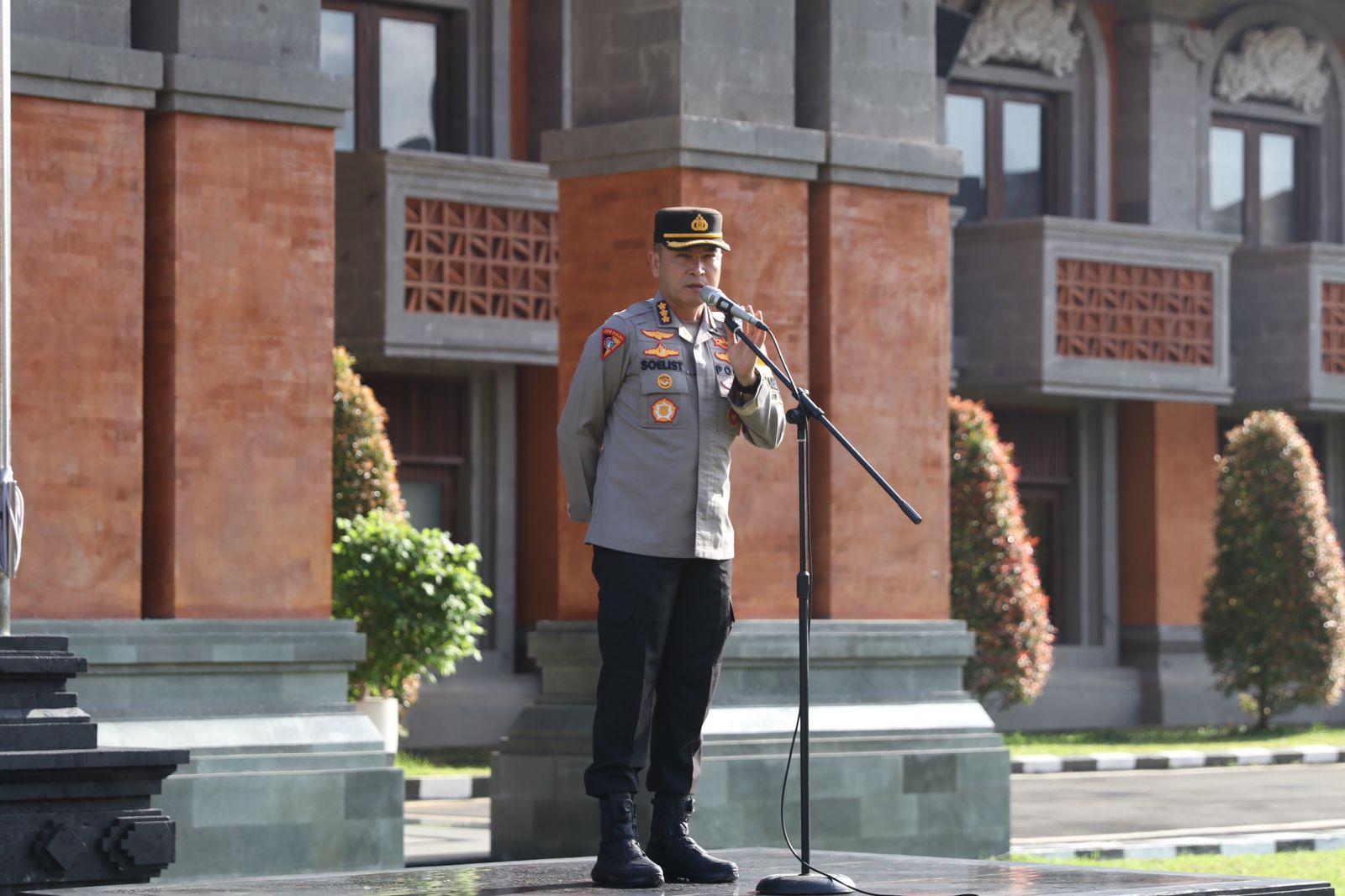 Dalam rangka mengecek kesiapan pasukan pengamanan, Karo Ops Polda Bali, Kombes Pol. Soelistijono, S.I.K., M.H., selaku Karendal Ops Gapura Agung VII-2024 memimpin langsung apel gelar pasukan di Halaman Depan Mapolda Bali, Denpasar.