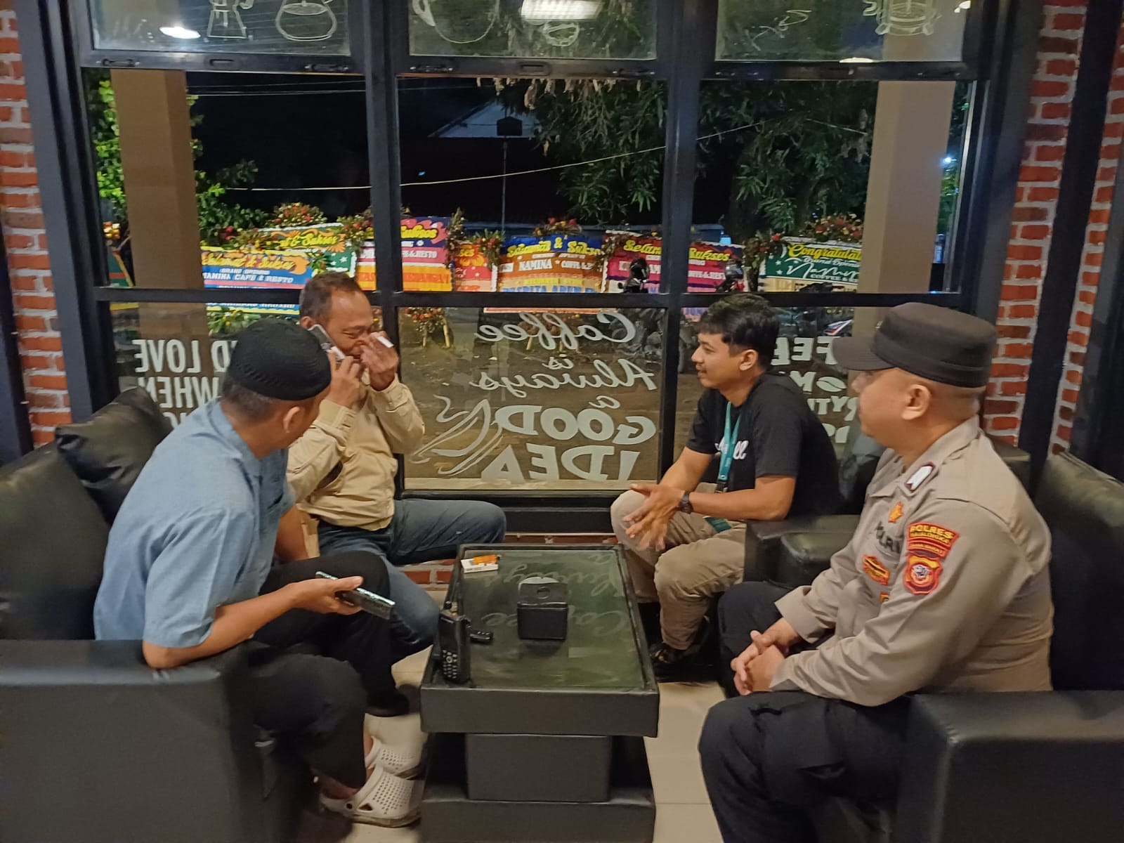 Majalengka, – AKP Iwan Sutari, Kapolsek Majalengka Kota, bersama dengan anggota Polsek Majalengka Kota,Polres Majalengka,Polda Jabar melaksanakan silaturahmi dan dialogis dengan pihak Manajemen Namina Coffee & Resto yang berlokasi di Jalan Ahmad Yani, Kecamatan Majalengka, Kabupaten Majalengka. Kamis (11/04/2024) malam.