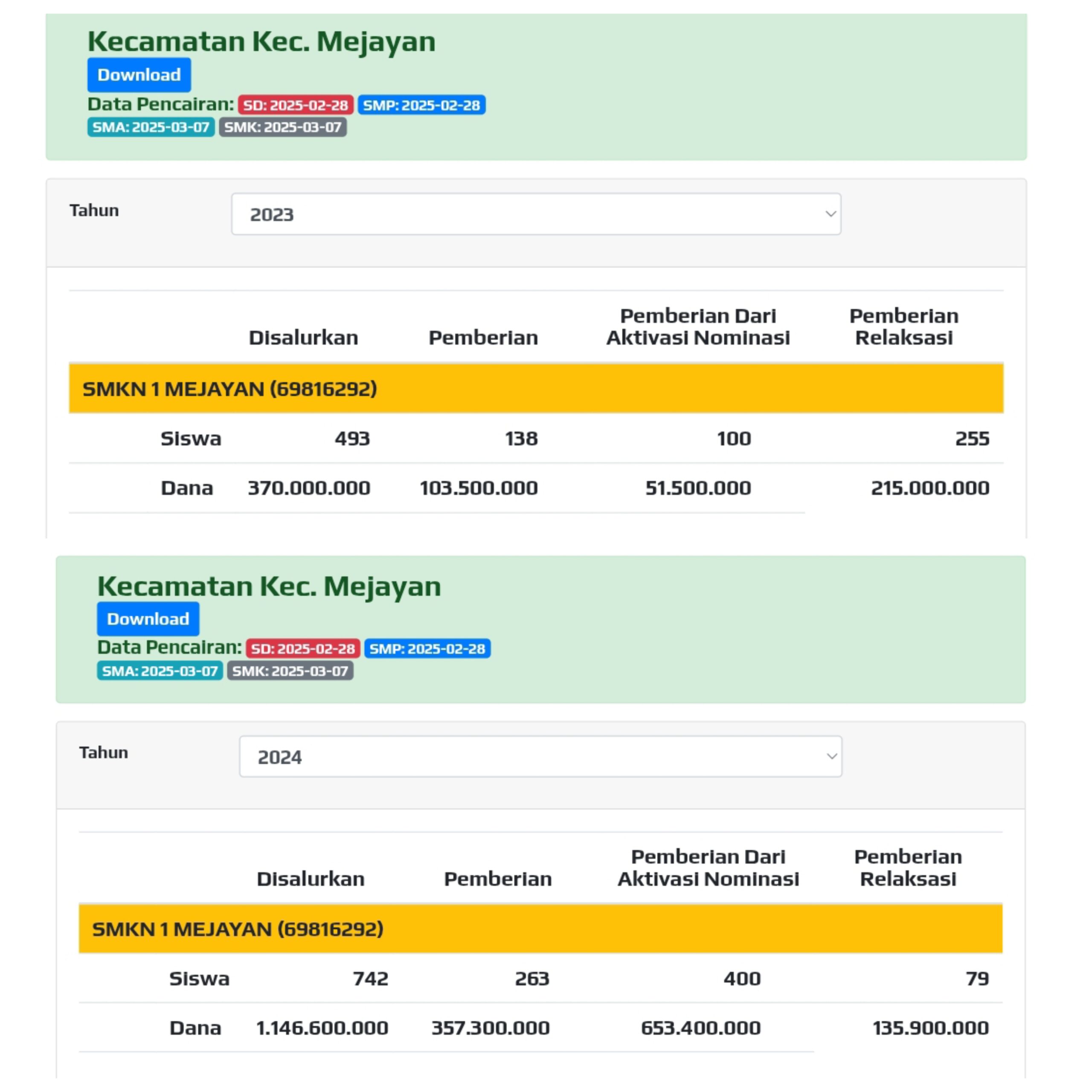 Dana dari aktivasi nominasi: 400 siswa senilai Rp 653.400.000