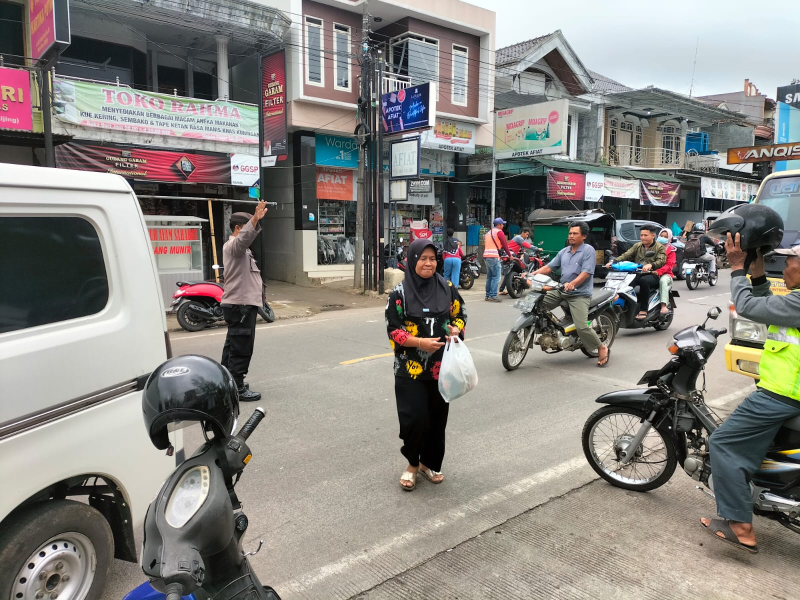 “Adapun Pelaksanaan pengaturan bagi pengguna jalan, di tempat-tempat tersebut arus lalu lintas sangat padat khususnya pagi hari,” ujar Kapolsek Cikijing.