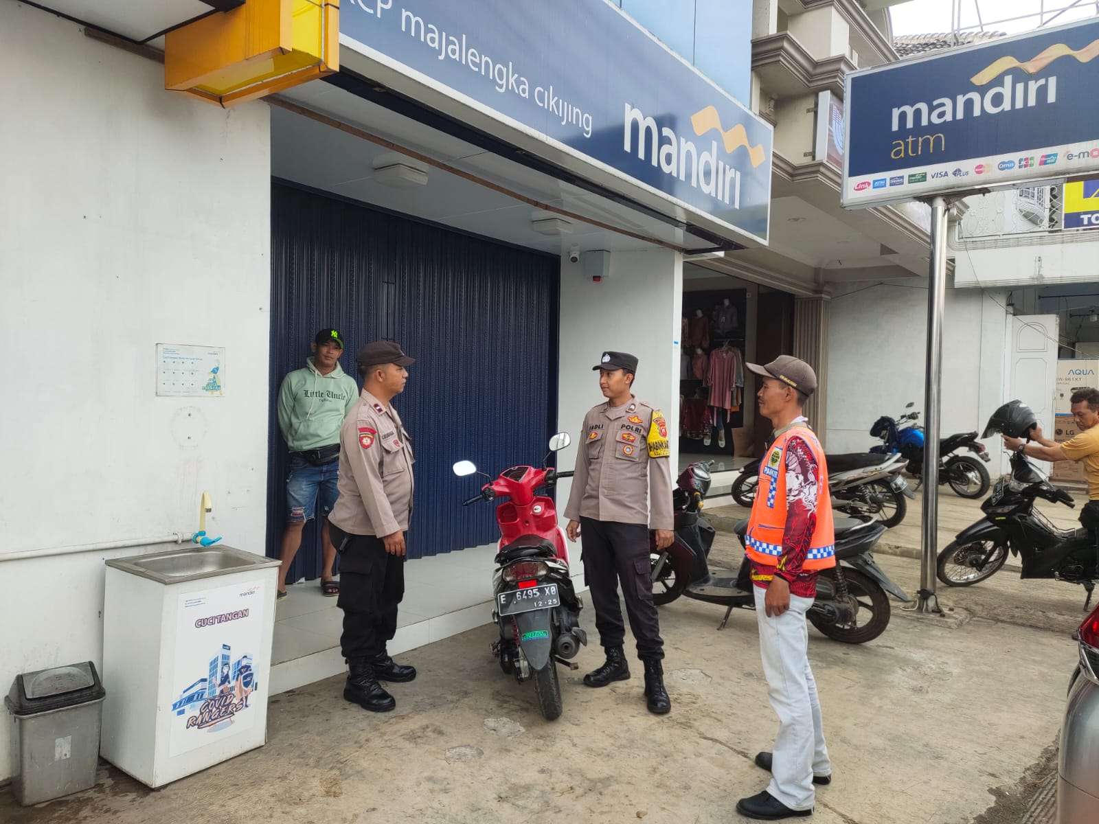 Majalengka – Untuk memberikan Pengamanan pada Obyek Vital yang ada di wilayah hukum Polsek Cikijing, Personil Polsek Cikijing Polres Majalengka Polda Jabar, Ps. Panit Samapta l Aipda Eman Subagja, Bhabinkamtibmas Bripka Dede Arif dan Briptu Fadli melaksanakan Patroli Mobiling ke Bank Mandiri KCP Cikijing dan Bank BRI Unit Cikijing. Sabtu (03/06/2023).
