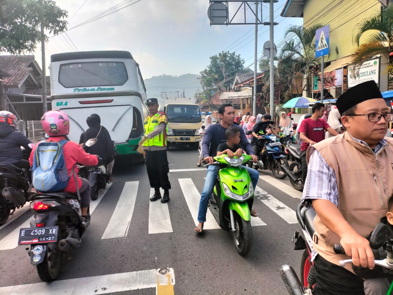 Majalengka – Setiap pagi hari Personil Polsek Cikijing Polres Majalengka Polda Jabar selalu hadir di tengah-tengah masyarakat yang membutuhkan pelayanan masyarakat terutama pengguna jalan, Ps. Panit Samapta III Aiptu Agus Sri Wandono, S.H melaksanakan kegiatan pengaturan arus lalu lintas di Jalan Cikijing-Kuningan tepatnya di Depan TK PUI Desa Cidulang,Kecamatan Cikijing,Kabupaten Majalengka, Kamis (22/06/2023).