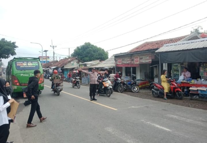Majalengka,- Polisi dari Polsek Dawuan Polres Majalengka melaksanakan pengaturan lalu lintas pagi di depan PT. Leetex Garmen, Desa Sinarjati, Kecamatan Dawuan, Kabupaten Majalengka, pada Selasa (30/7/2024). Kegiatan ini bertujuan untuk menjaga kelancaran arus lalu lintas dan memastikan keselamatan pengguna jalan di kawasan industri tersebut.