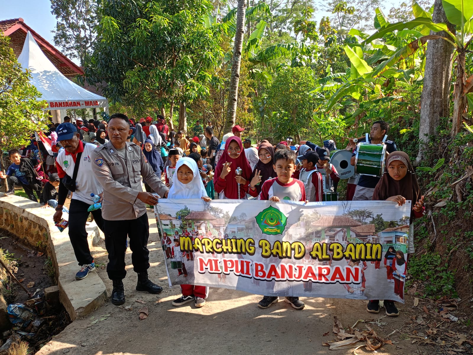Kegiatan jalan santai ini menjadi bagian dari rangkaian perayaan HUT RI yang diikuti oleh warga Desa Banjaran. Untuk memastikan berlangsungnya kegiatan dengan aman dan tertib, personel polisi dari Polsek Maja diterjunkan untuk mengamankan jalur yang akan dilalui oleh peserta jalan santai.