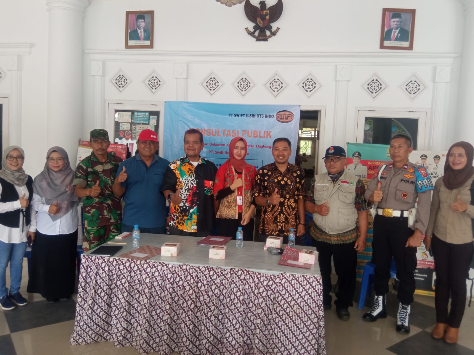Turut hadir dalam acara, Tim Konsultan Amdal, perwakilan DLHK, Kapolsek Jatiwangi diwakili Aipda Dadang Sukendar, Camat Jatiwangi diwakili Sekcam Sdr. Wawan Herawan, Kepala Desa Sukaraja Wetan Sdr. Abdul Kohim, ST, Bhabinkantibmas dan Babinsa Desa Sukaraja Wetan, Masyarakat Desa Sukaraja Wetan yang berada di wilayah PT. Swift, dan stakeholder terkait